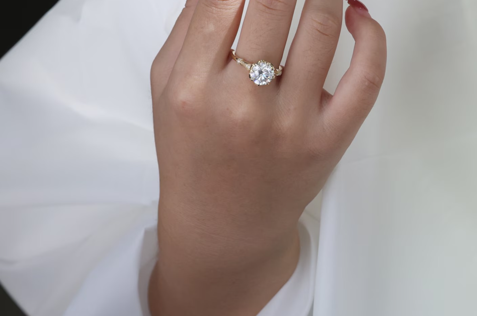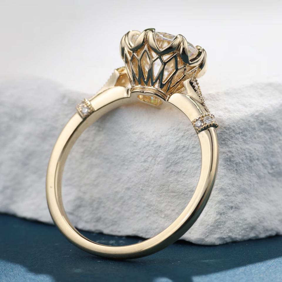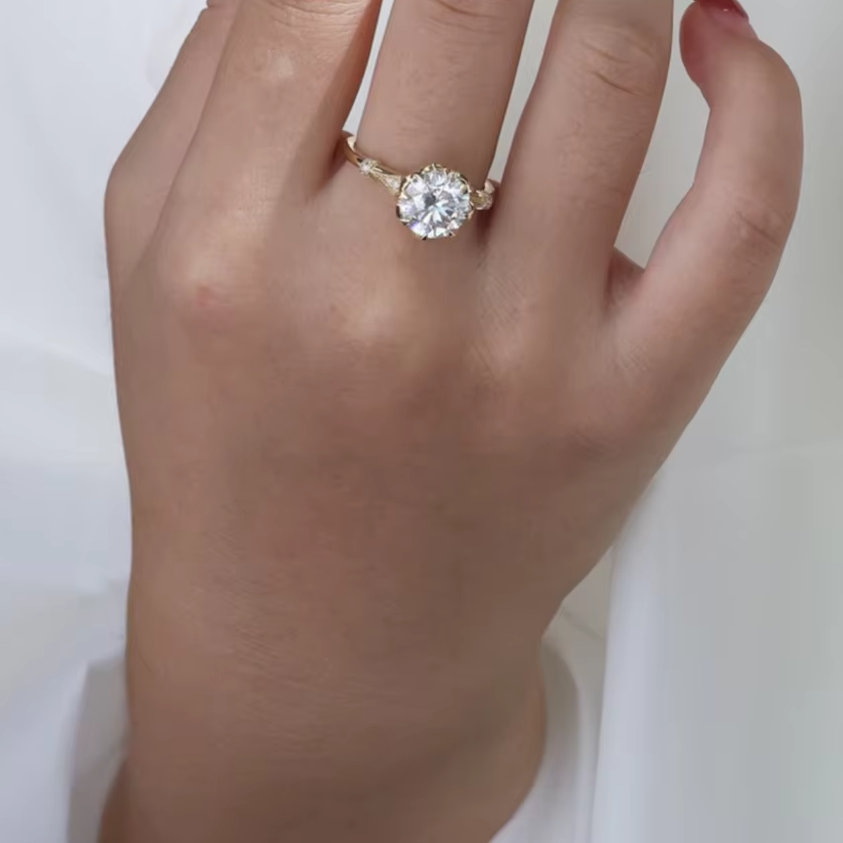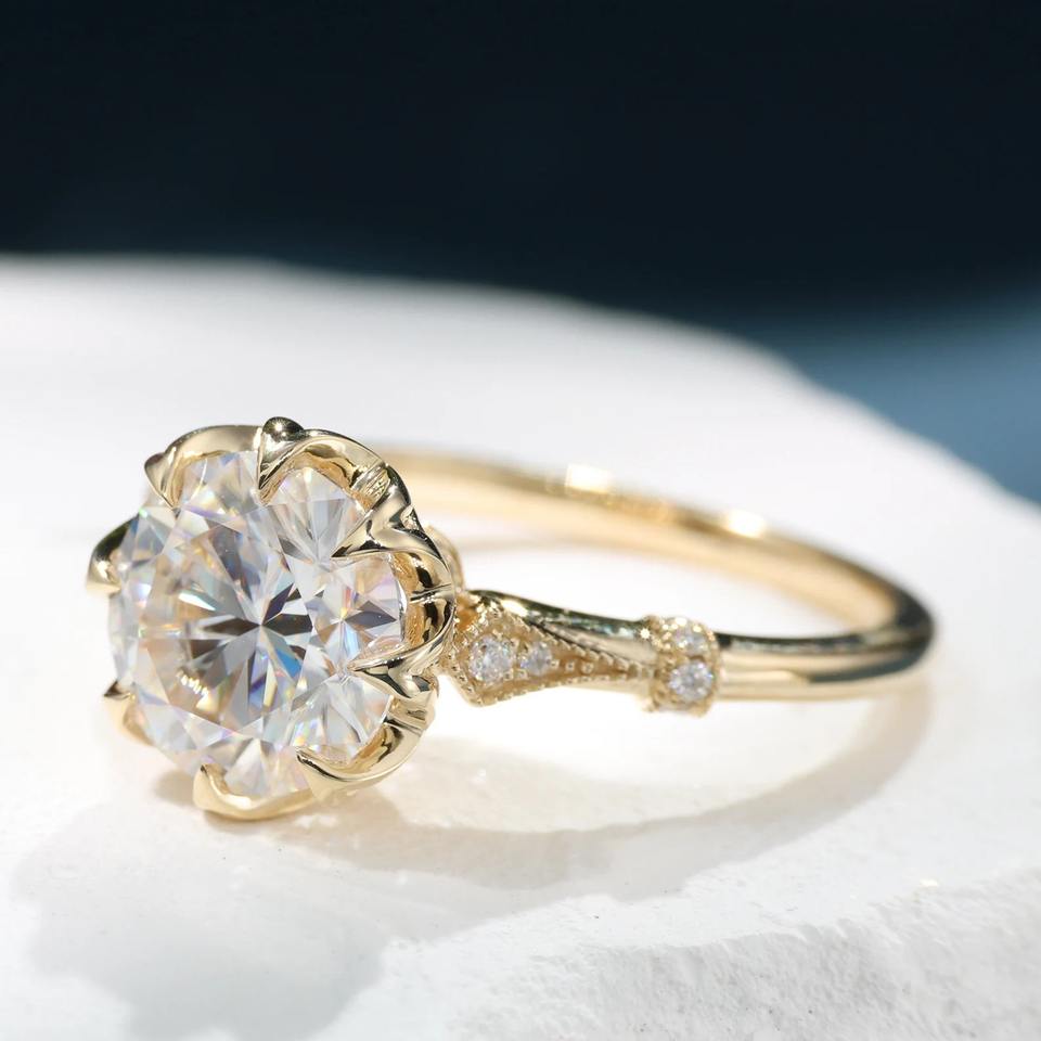 Anillo de compromiso de 8 puntas con diamante moissanita de forma redonda única, plata de ley 925, anillo de boda personalizado