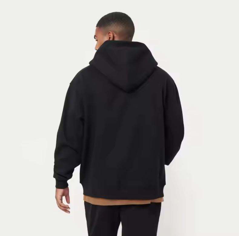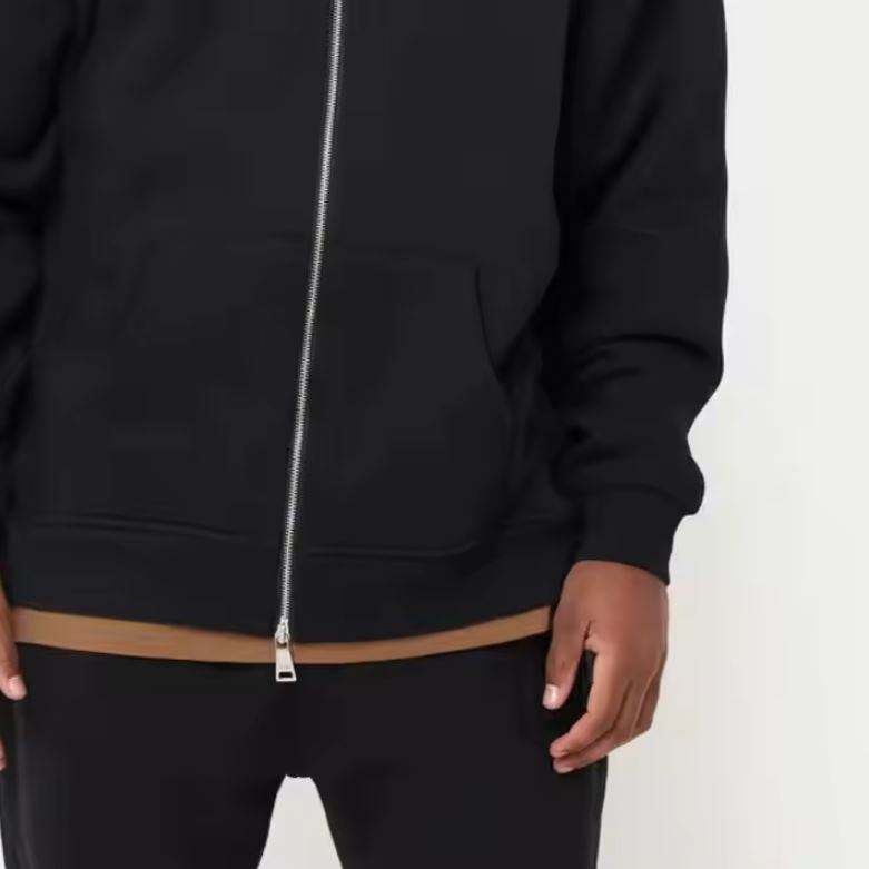 80% Algodón 20% poliéster hombros caídos estilo frontal con cremallera bolsillos canguro dobladillo acanalado y puños Sudadera con capucha negra