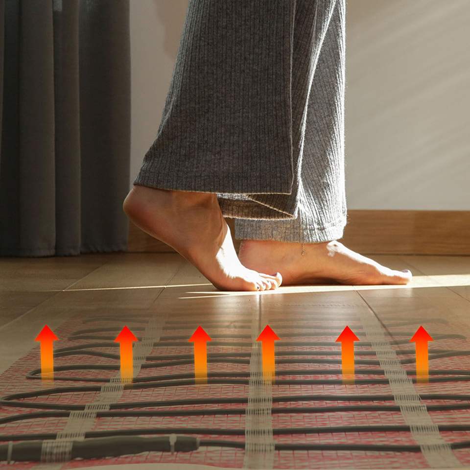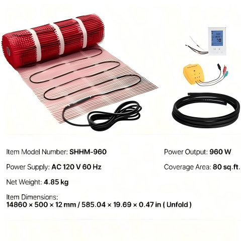 Sistema de calefacción por suelo radiante eléctrico de 120 V con termostato inteligente de control automático y malla autoadhesiva de 80 pies cuadrados