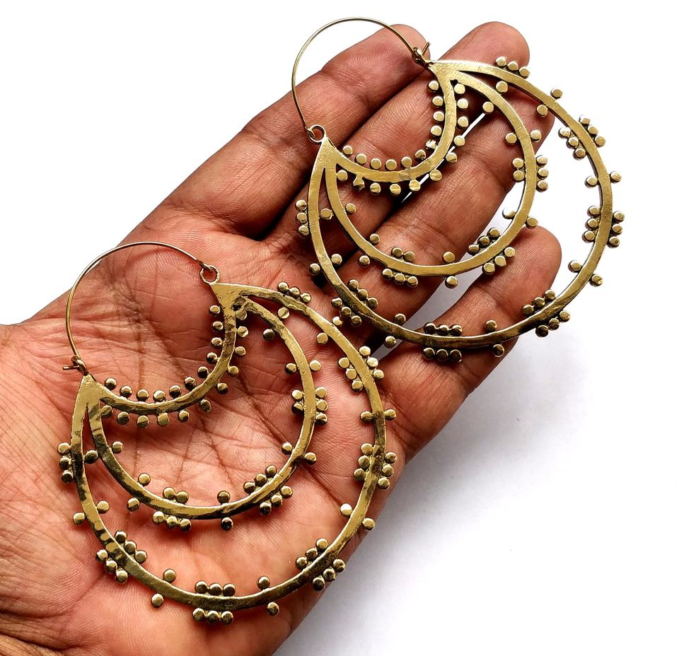 Pendientes de Aro Grandes de Latón con Acabado Dorado de 80 mm, Accesorio Elegante y Moderno