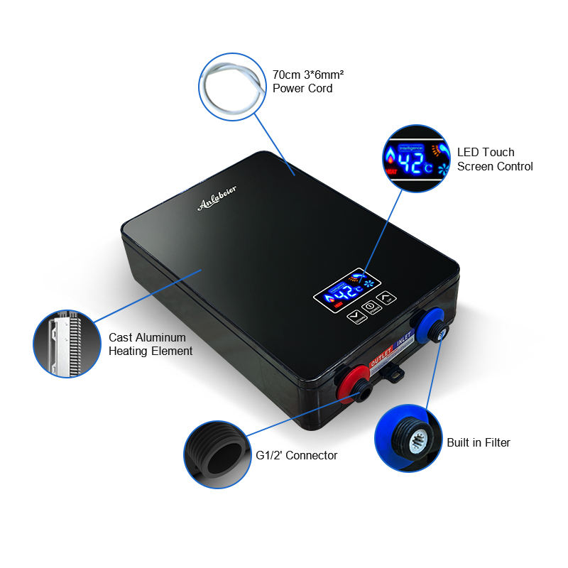 Calentador de agua instantáneo compacto de 8000W para fregadero, ducha y cocina con antiescarcha