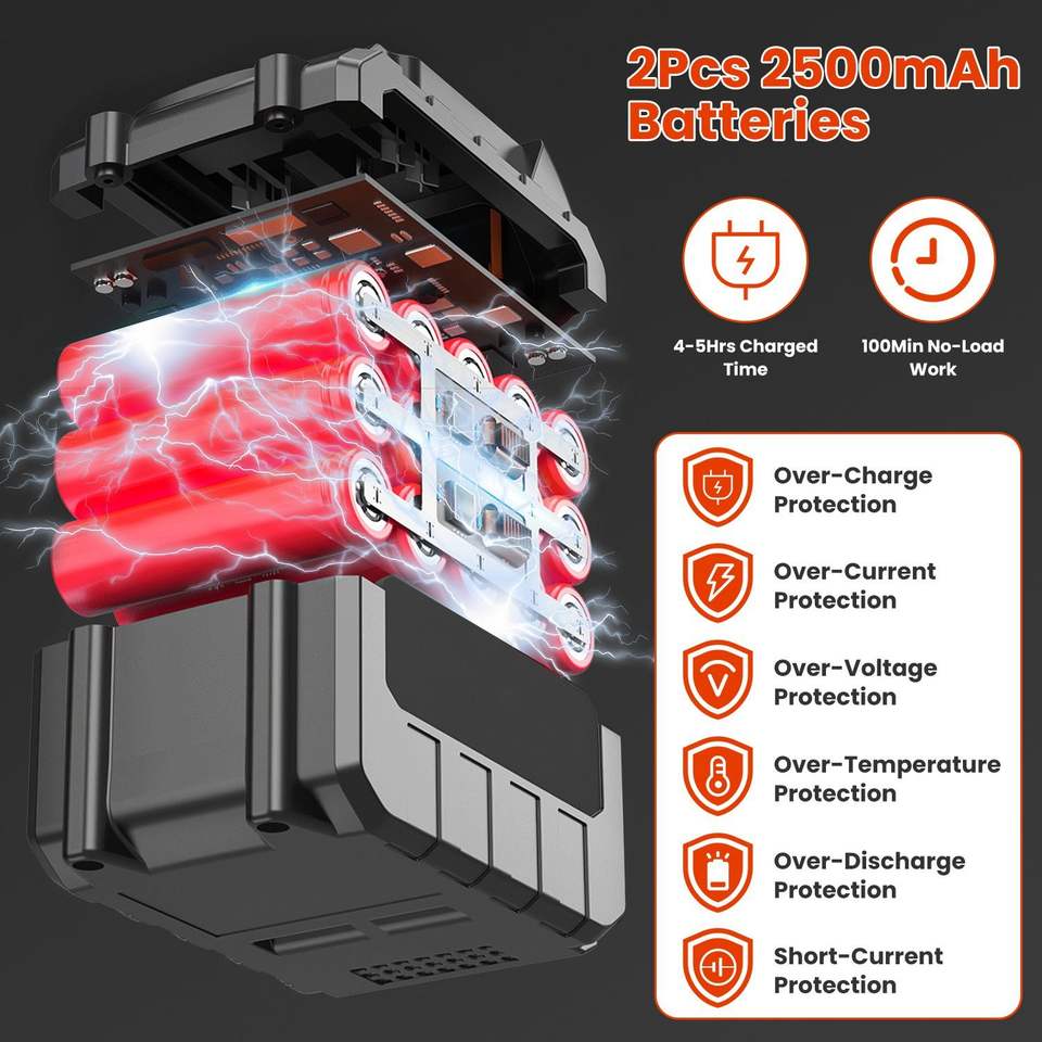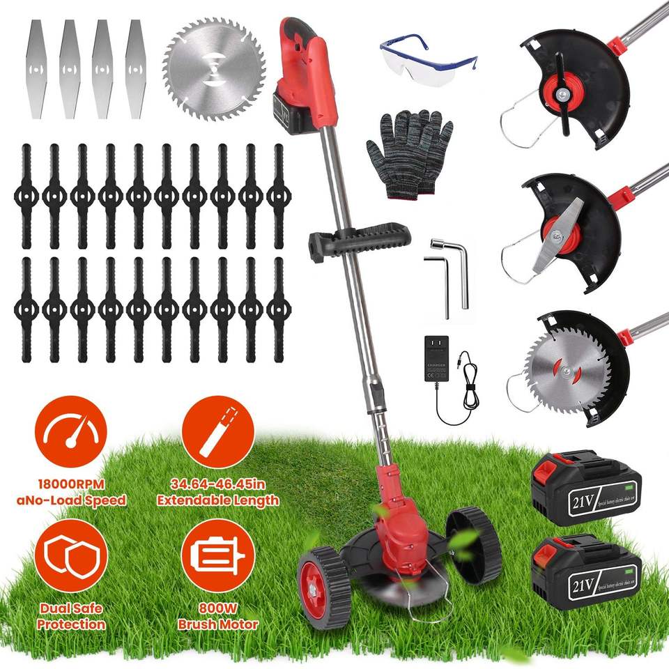 Wacker de césped con ruedas inalámbrico de 800W, motor de cepillo silencioso de 50dB, 2 baterías extensibles de 21V y 2500mAh (carga de 4 a 5 horas), ajustable en 90 grados