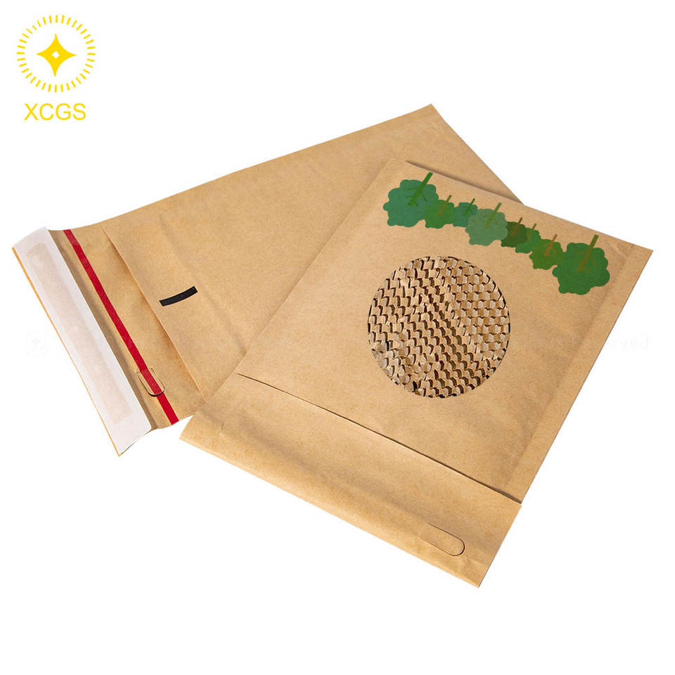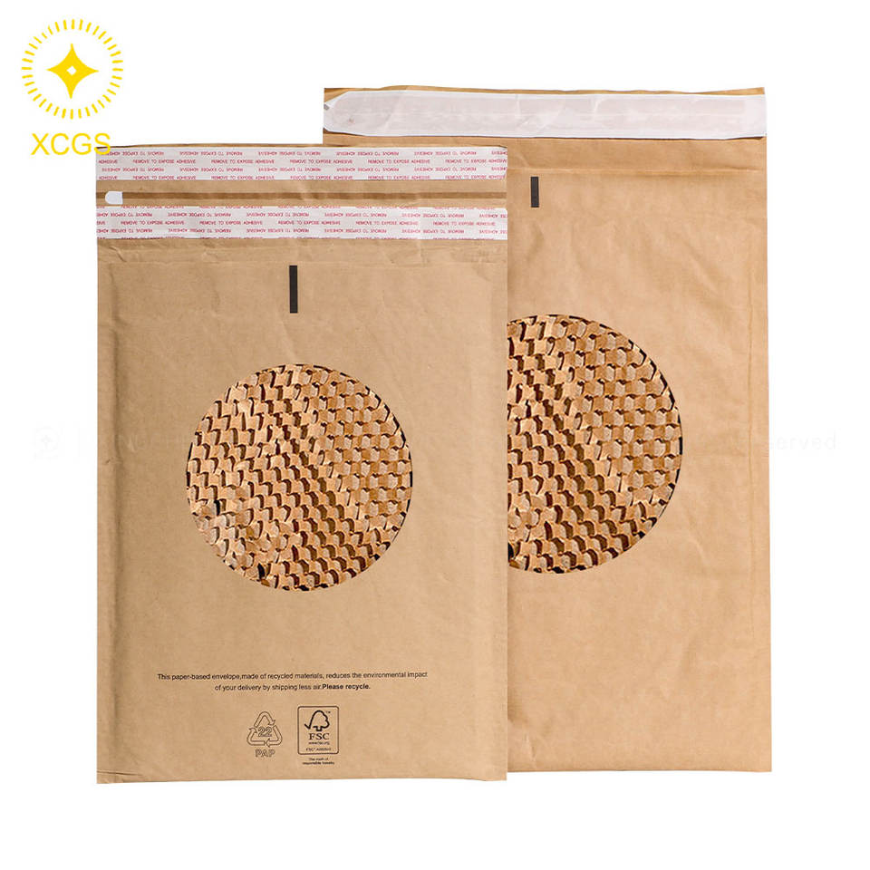 Bolsa de correo de papel de panal de 80G, 100%, compostable, marrón, personalizado, sobre de papel Kraft, reciclaje de papel Kraft, panal de abeja