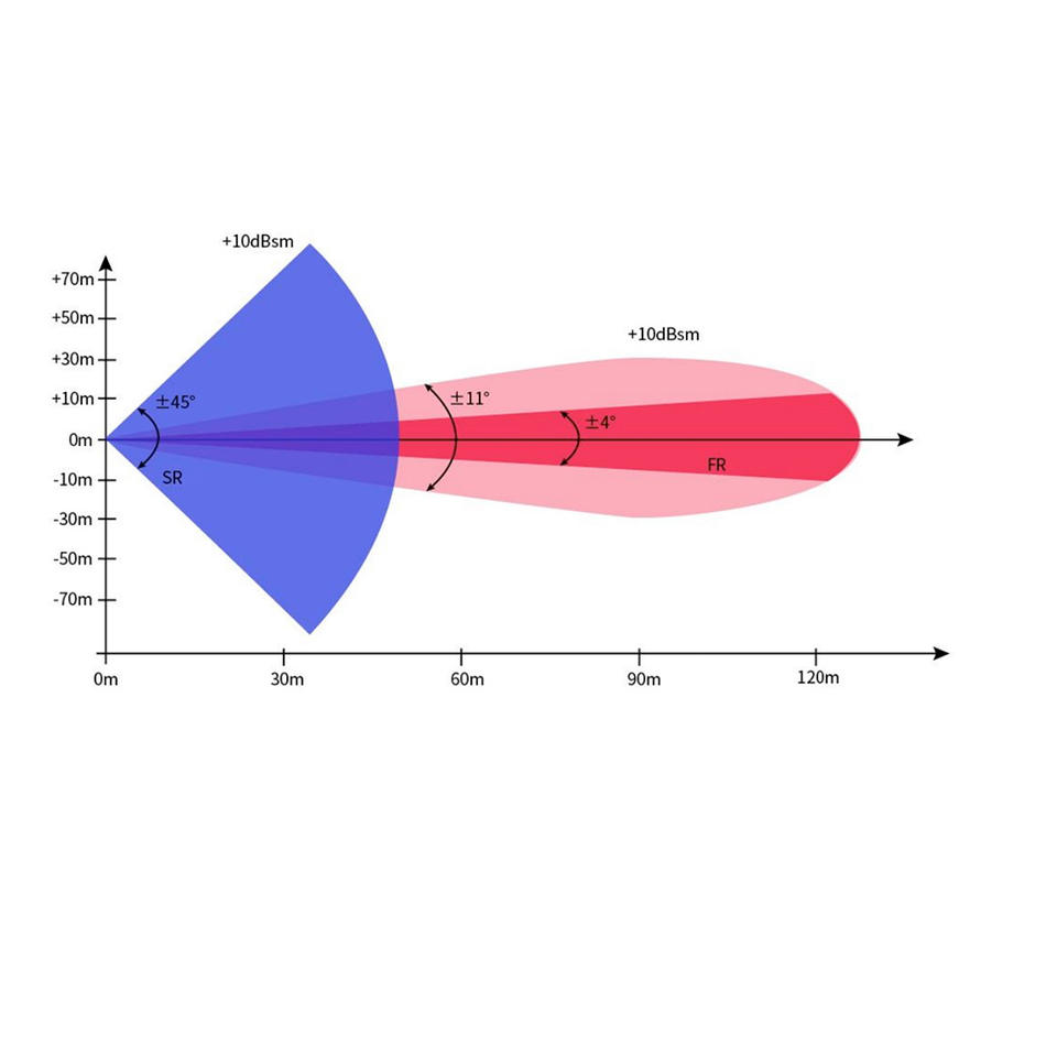 Detectar Distancias:120m (Humano, RCS 1.0m2) 120m (Vehículo, RS 30.0m2)
