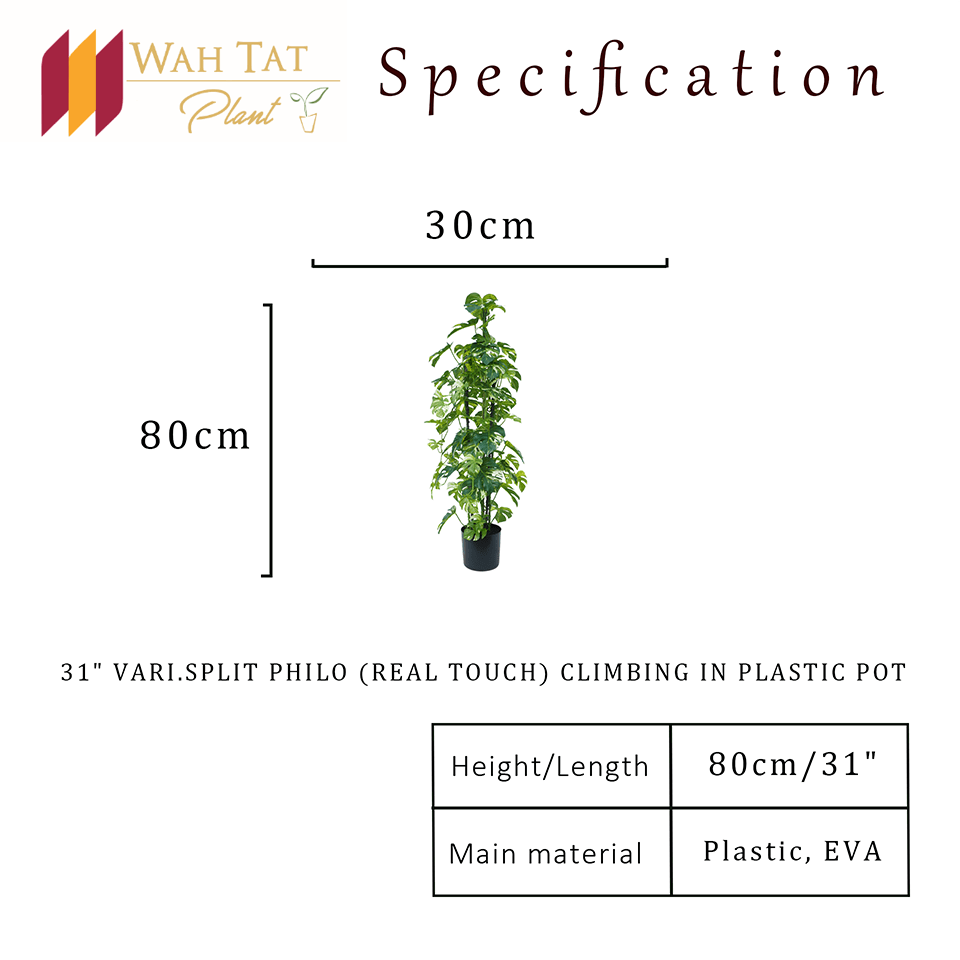 80cm Planta Artificial Topiary Vari. Split Philo Climbing en maceta de plástico Calidad OEM Fábrica para la decoración de la Oficina del hotel