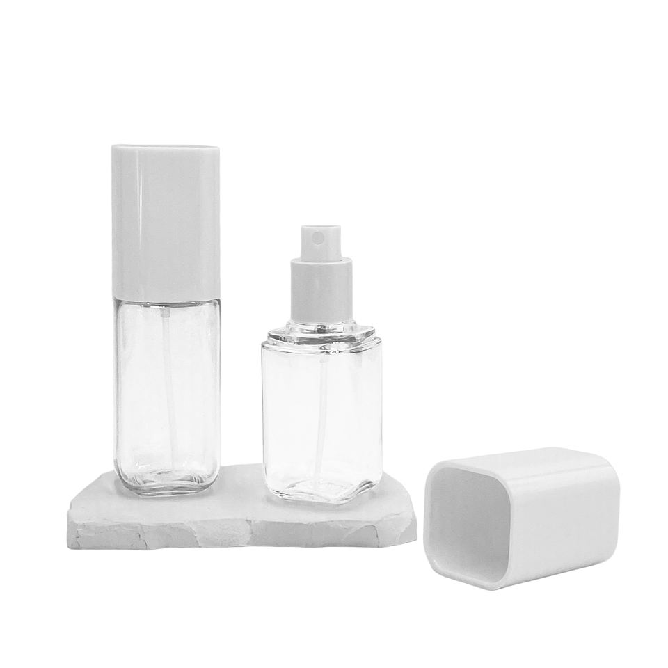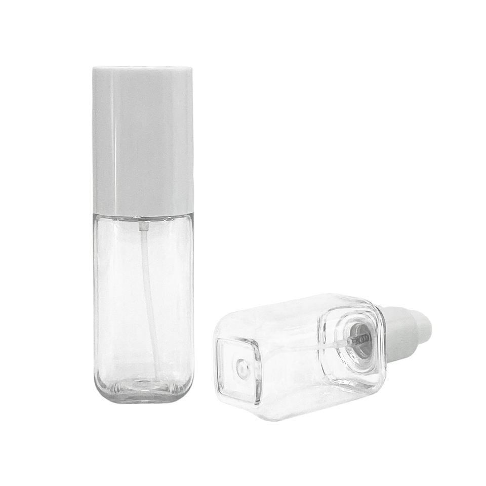 Botella Cosmética Cuadrada Transparente de PET de 80ml 100ml con Pulverizador Blanco de Rocío Fino