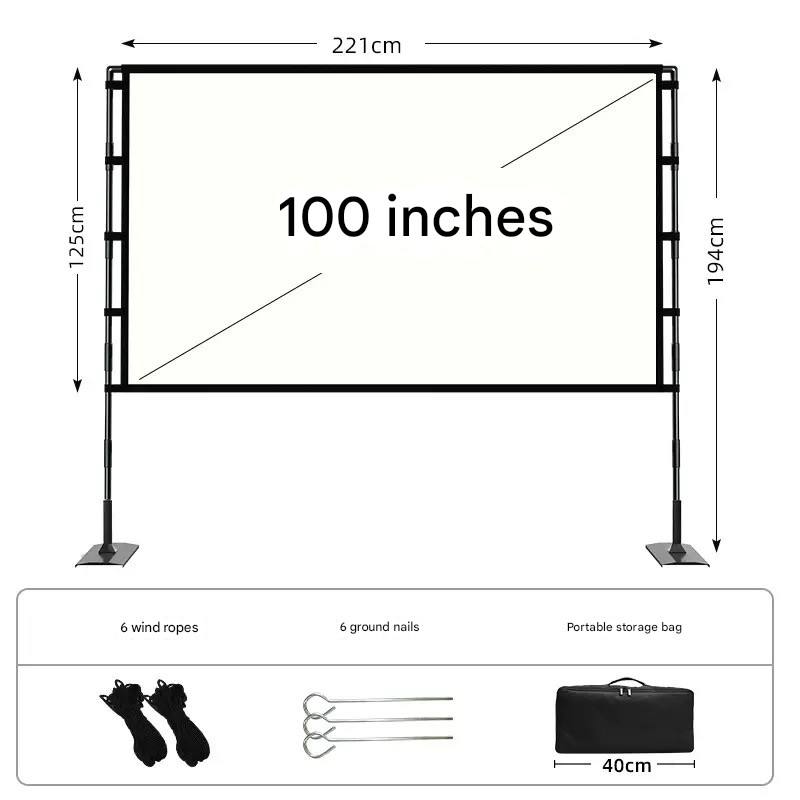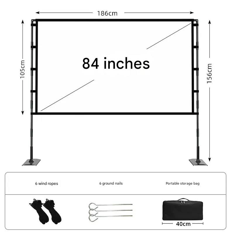 Pantalla de Proyección Portátil Plegable Rápida para Exteriores de 84, 100 y 120 Pulgadas, Formato 16:9, con Bolsa de Transporte, para Jardín