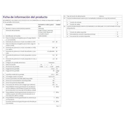 85 pulgadasTamaño de pantalla