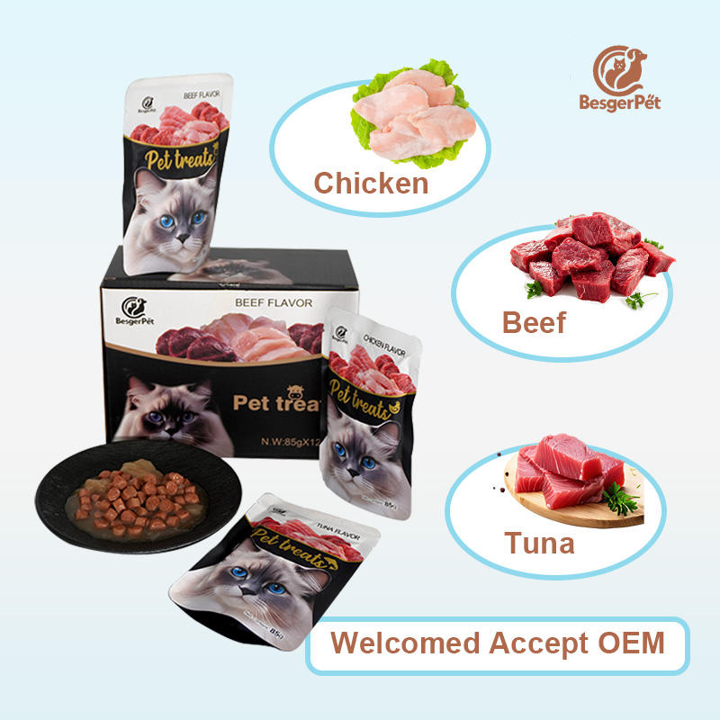 Alimento Húmedo para Gatos, 85g*12 Bolsas, Rico en Proteínas, con Pollo, Conejo y Mejillones, para Aumentar de Peso y Humectación, Sin Granos