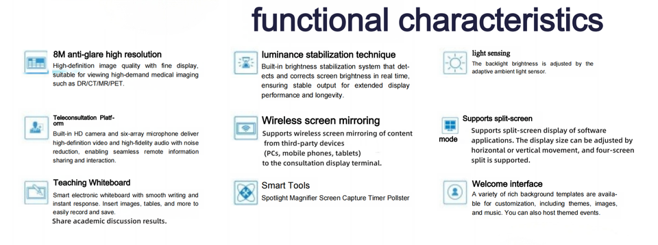 Durable, Ajustable, Operación fácil, Seguro y fiable, Pantalla táctil