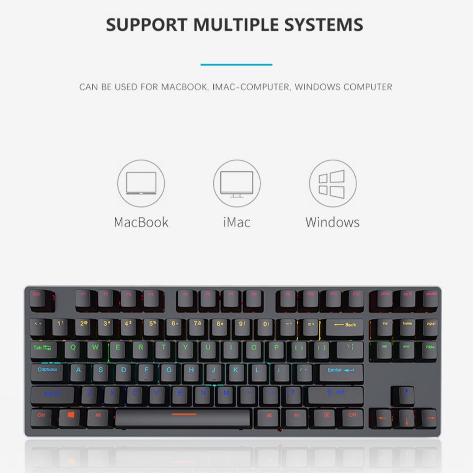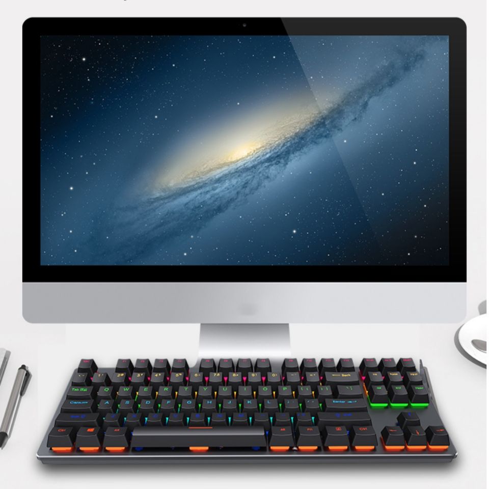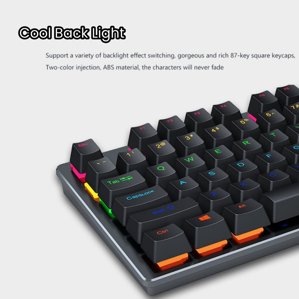 Teclado mecánico para juegos de 87 teclas Interruptor azul con retroiluminación RGB para computadora portátil de escritorio PC
