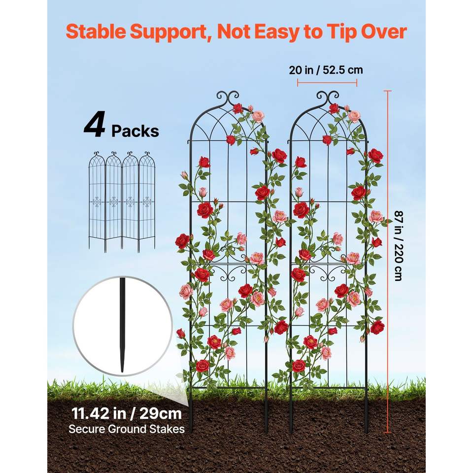 Trellis para Rosas de 87 x 20 Pulgadas, Paquete de 4, Trellis para Flores de Jardín con Cierre Práctico, Acabado con Recubrimiento en Polvo, Cercas y Puertas Duraderas