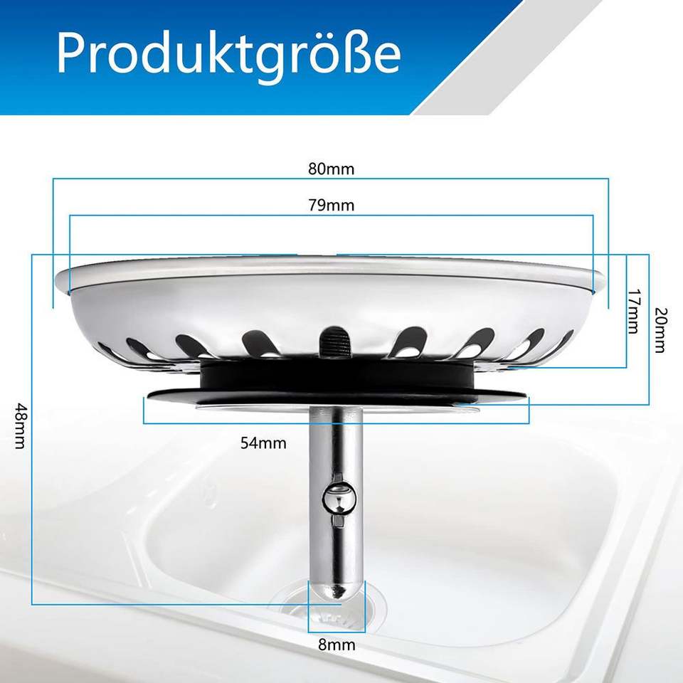 874Sy Stopper - Filtro de desagüe de acero inoxidable para fregadero de cocina