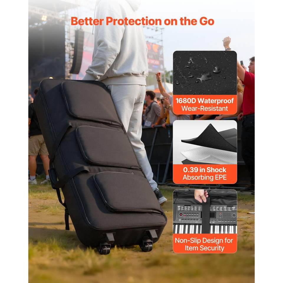Estuche para Teclado de 88 Teclas, con Ruedas para Transportar el Piano, Asa Resistente, 3 Bolsillos de Almacenamiento, 40.9 X 16.9 X, Bolsas para Instrumentos Musicales, Protección
