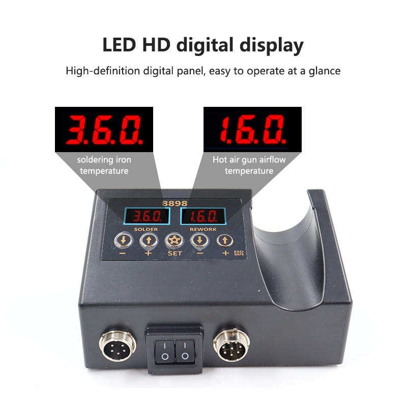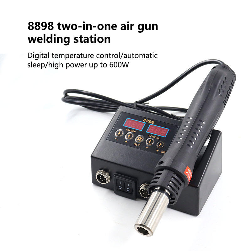 Estación de retrabajo de soldadura 8898 2 en 1 estación de soldadura multifunción pistola de calor de hierro de soldadura, temperatura y volumen de aire ajustables