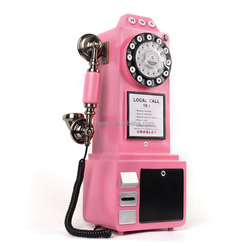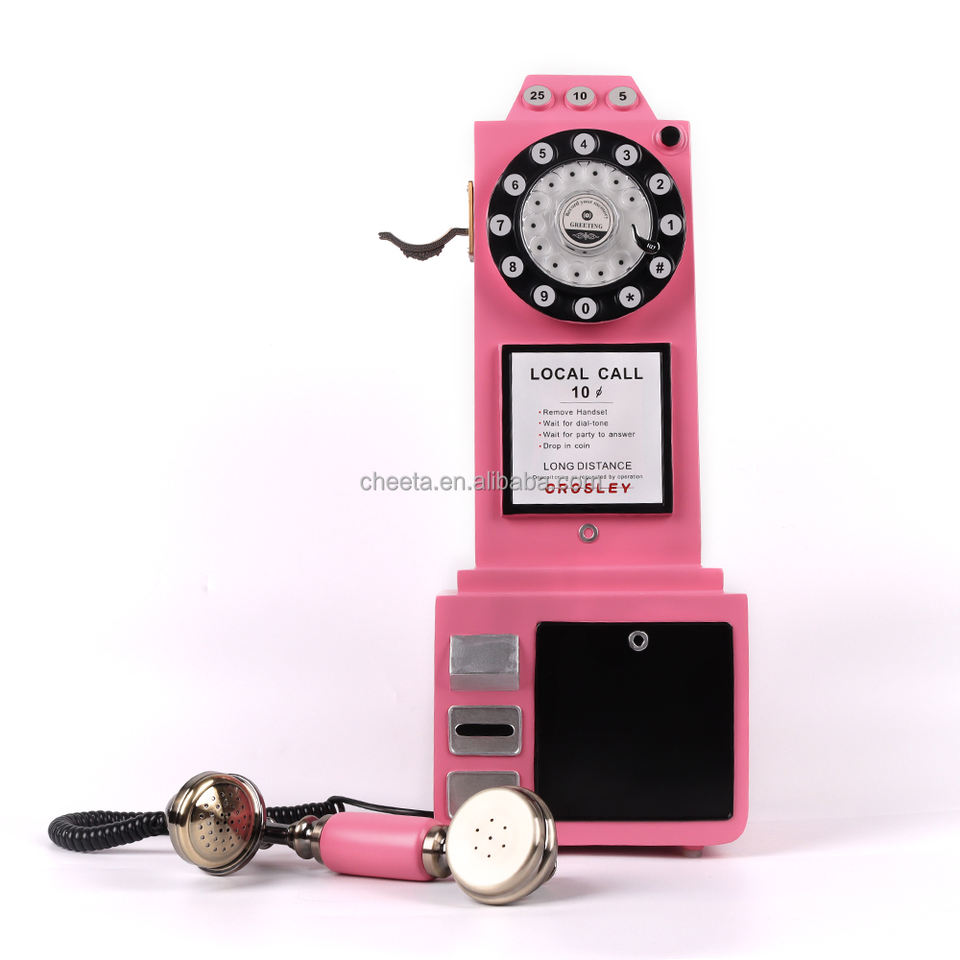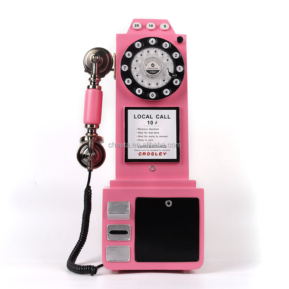 Teléfono Antiguo con Monedas Estilo Europeo, Cabina de Fotos, Cabina Telefónica, Teléfono con Libro de Visitas de Audio, Color Rosa para Bodas