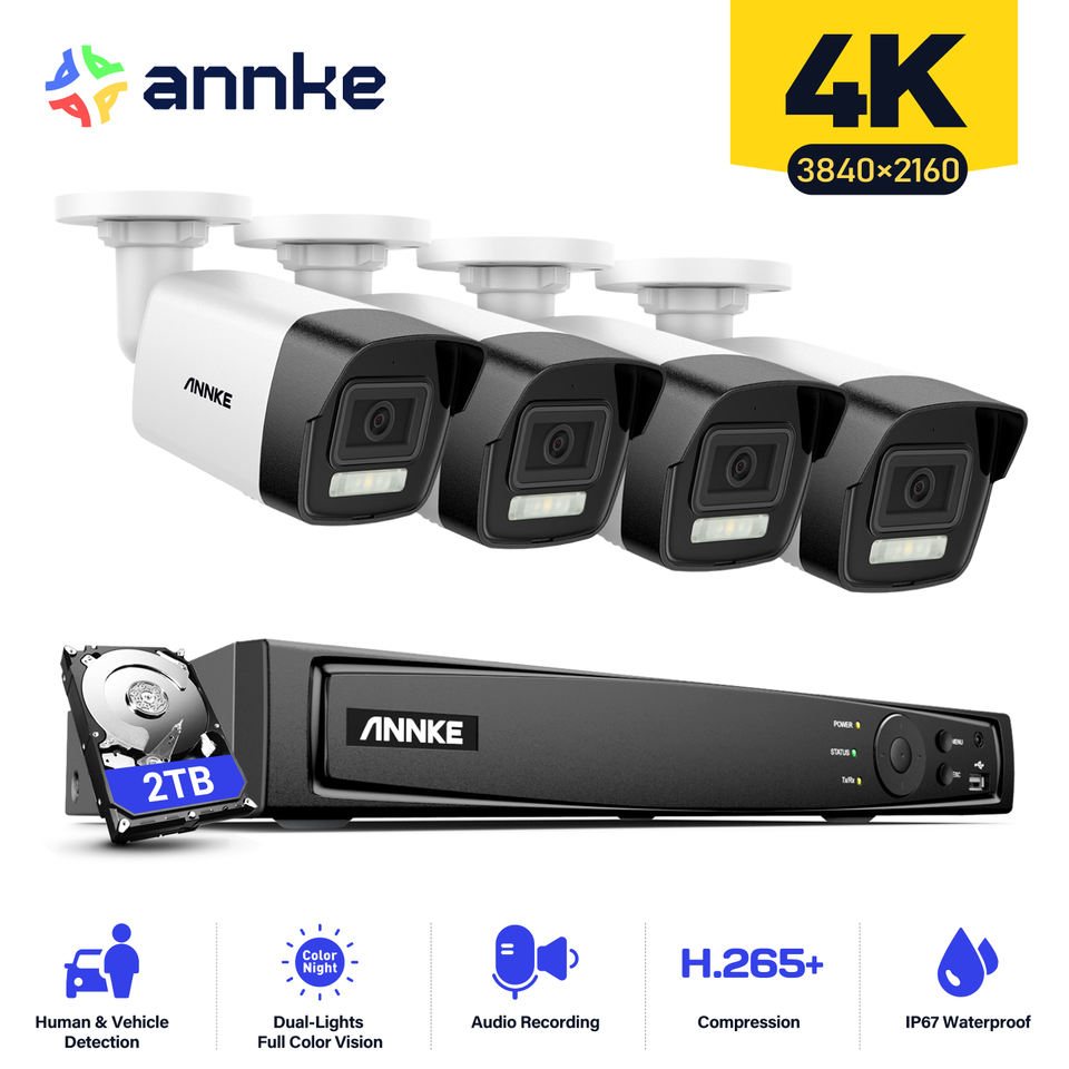 8 canales 8MP PoE NVR Sistema Exterior IP67 Resistente a la intemperie 4K Cámaras CCTV Detección de movimiento Entrada de audio y 2TB HDD