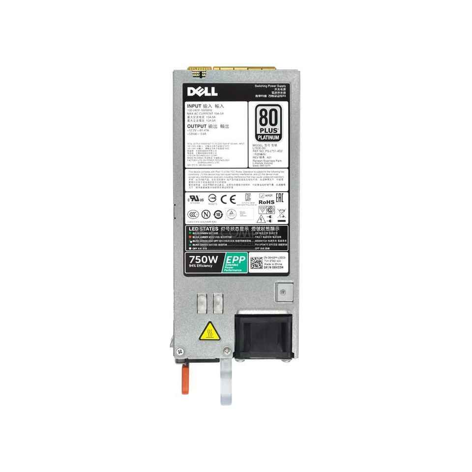 Fuente de alimentación DELL 8H33M 750W 80+ PLATINUM para R630 R730 R730XD T430 T630 Reacondicionada