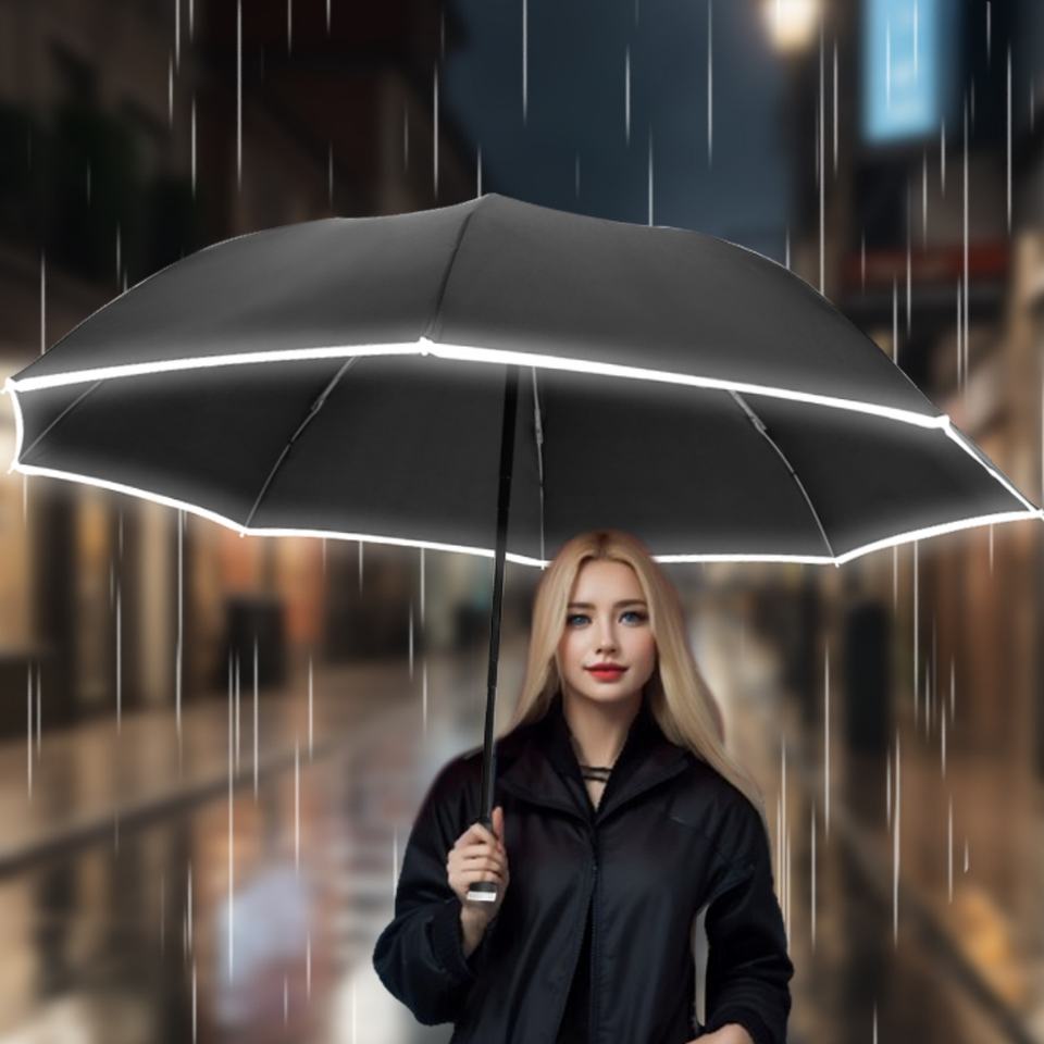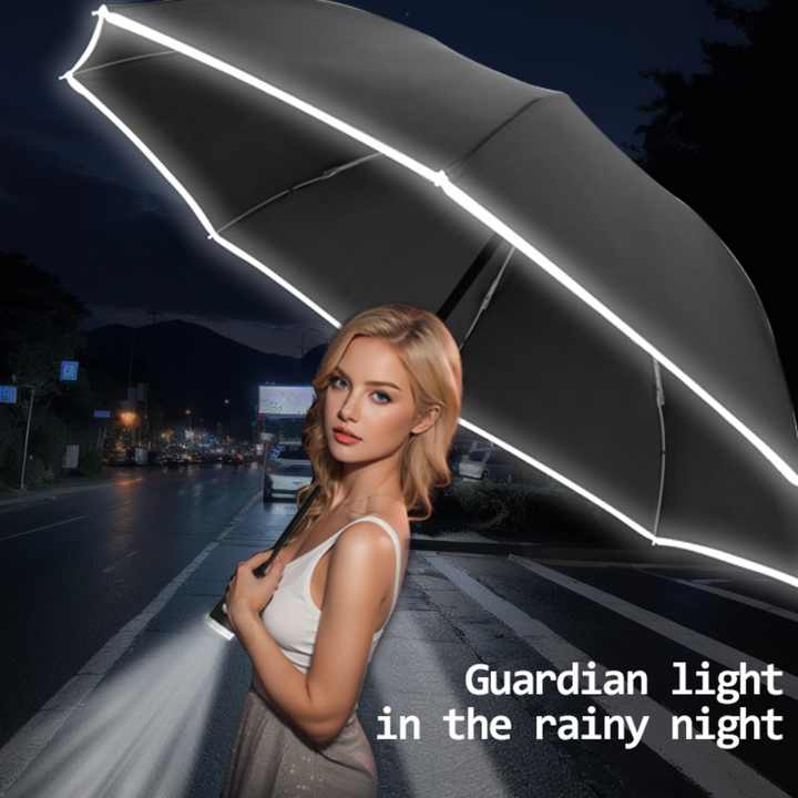 Paraguas LED 8K con Función Automática, Paraguas Plegable con Mango Giratorio, Recubrimiento Reflectante, Linterna para Viajes Nocturnos, Logotipo Personalizado, Regalo para el Día de la Madre, Playa