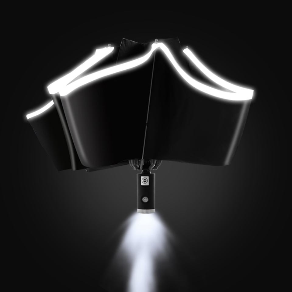 Nombre del producto:Paraguas naranja con luz LED de seguridad para viajes