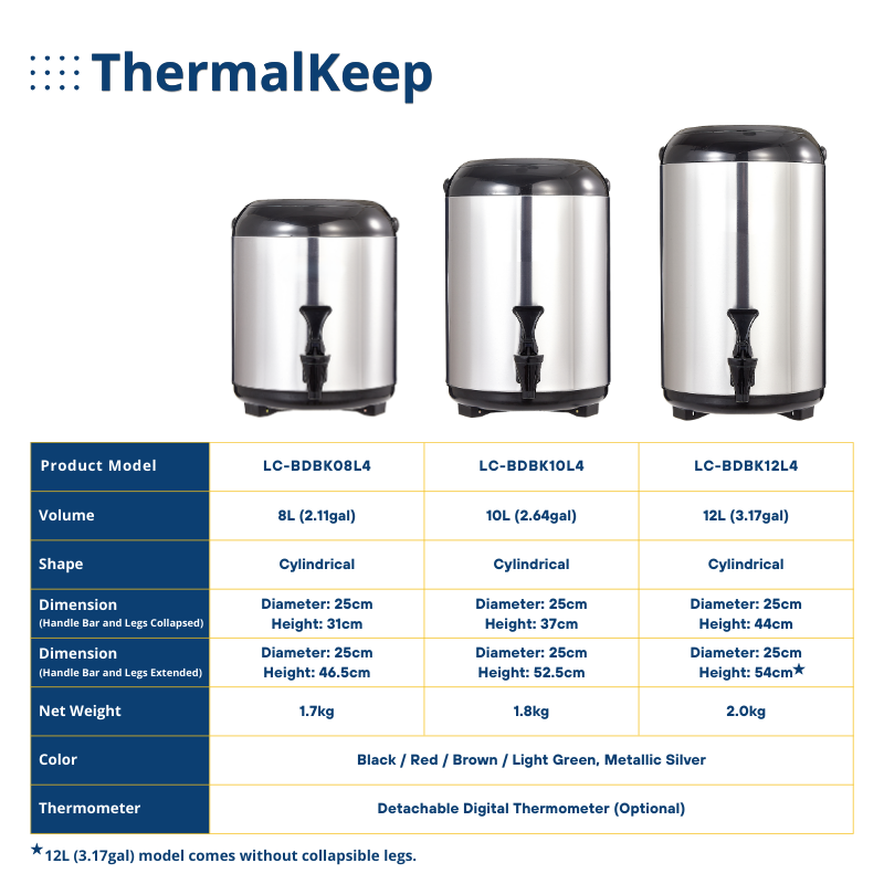 8L(2.11gal) 10L(2.64gal) 12L(3.17gal)Volumen