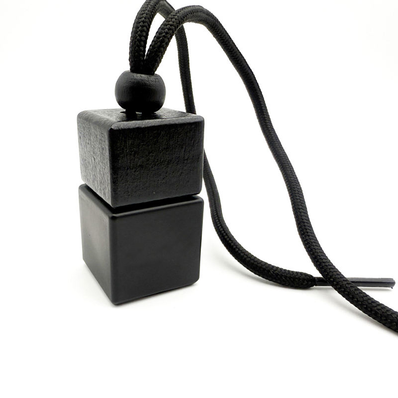 Botella Difusora para Auto Cuadrada de 8 ml, Vacía, Esmerilada, con Tapa de Madera Negra