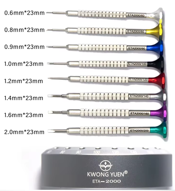 Juego de destornilladores de precisión de movimiento ETA 2000-1 de 8 piezas, utilizado para reparar movimientos, relojeros y herramientas de reparación de relojes