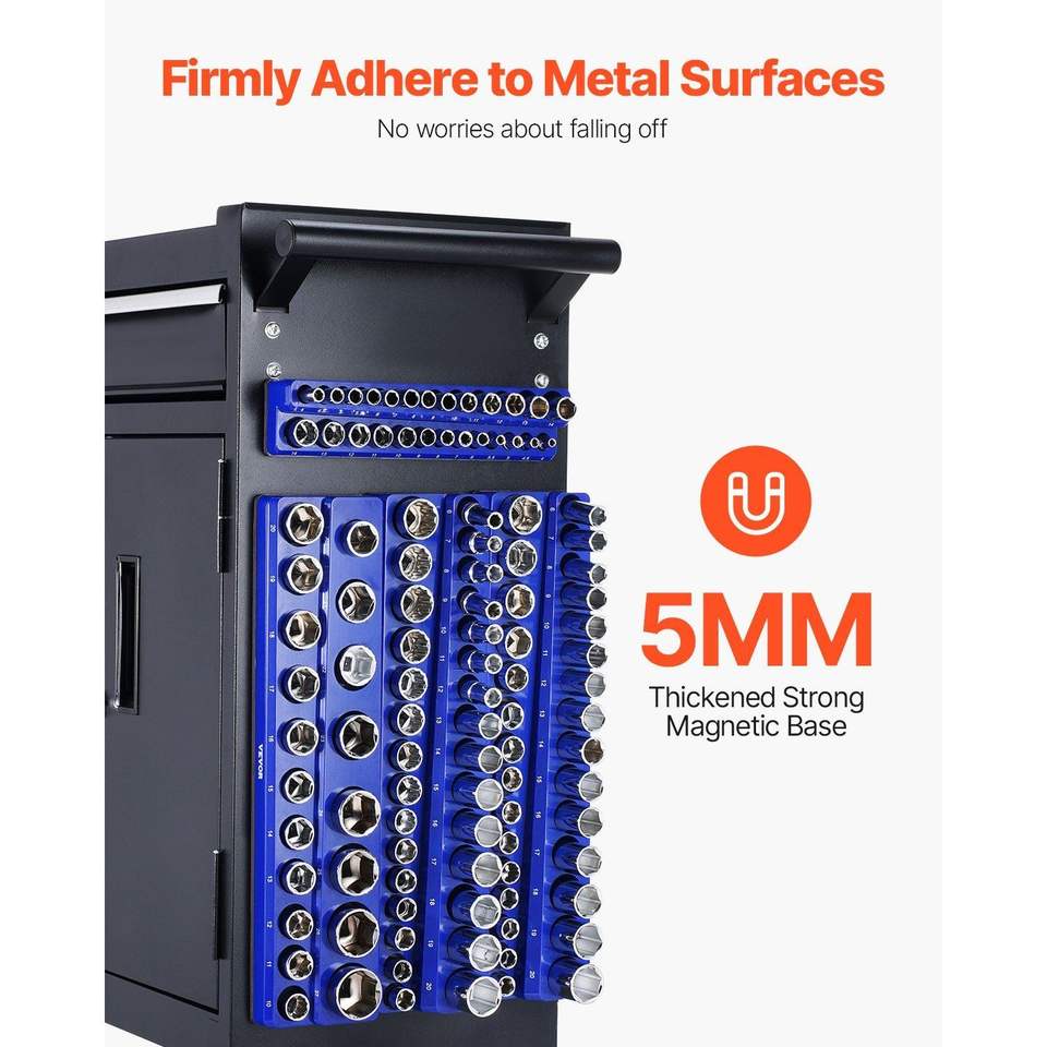 Juego de 8 Organizadores Magnéticos para Vasos de 1/4, 3/8 y 1/2 Pulgadas, Bandejas para Vasos Métricos y SAE con Etiquetas Transparentes, Gabinetes para Herramientas con Capacidad para 199 Piezas