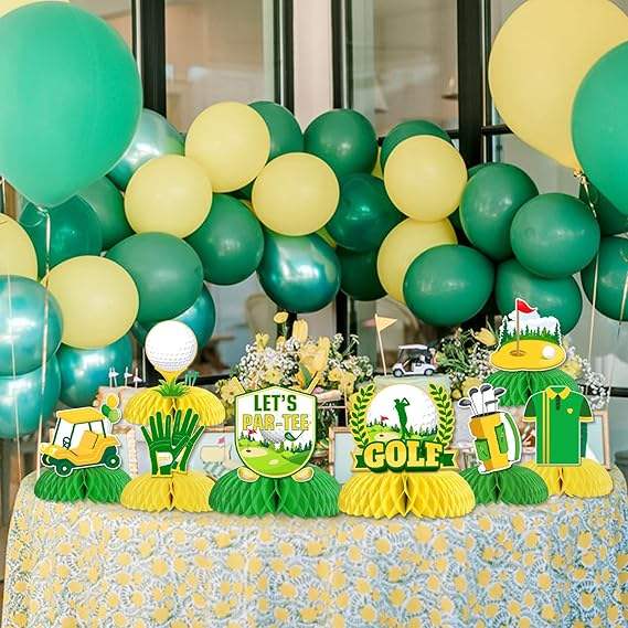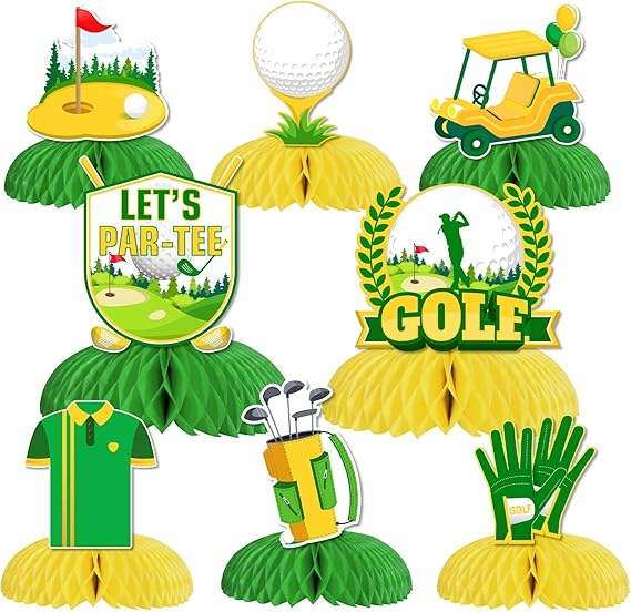 8 Piezas Decorativas para Mesa de Fiesta de Golf, Centros de Mesa de Golf Amarillos con Diseño de Panal
