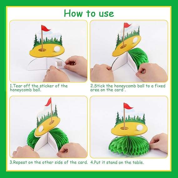 8 Piezas de Decoraciones para Mesa de Fiesta de Golf, Centros de Mesa de Panal de Abeja Amarillos y Verdes, Artículos para Fiestas Deportivas y Cumpleaños