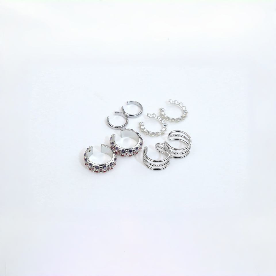 Juego de 8 Piezas de Pendientes de Oreja Plateados Sin Perforación, con Circonita y Cristales Multicolores, Clips de Oreja Minimalistas en Capas