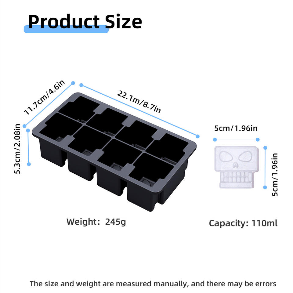 Molde de Silicona para Helado de Calavera, Cubitera Reutilizable Ecológica para Cerveza, Agua, Lavavajillas, Personalizada, 8 Piezas