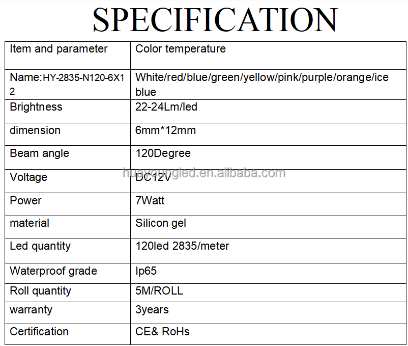 Temperatura del color(CCT)+0,0519 €/metro (Pedido mínimo: 1,000 metros)