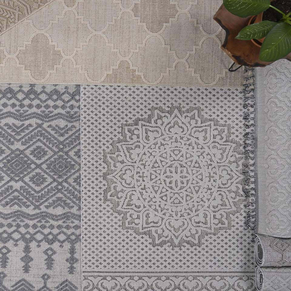 Alfombra de Interior/Exterior 8X10, Diseño de Celosía Blanca/Gris, para Decoración del Hogar