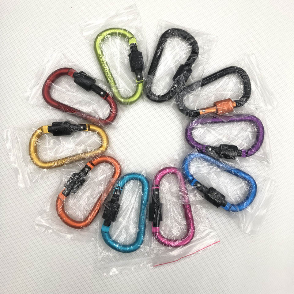 Mosquetón de aleación de aluminio de 8cm, Clip de llavero con anilla en D, llavero de Camping multicolor, gancho a presión, Kit de viaje al aire libre Quickdraws