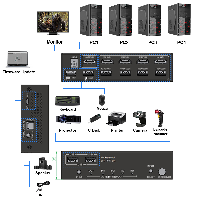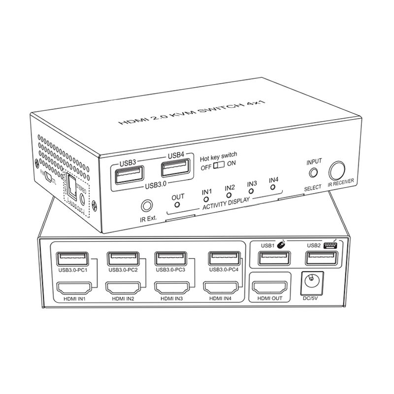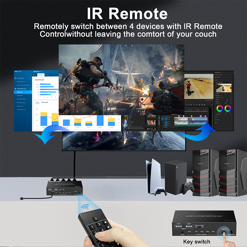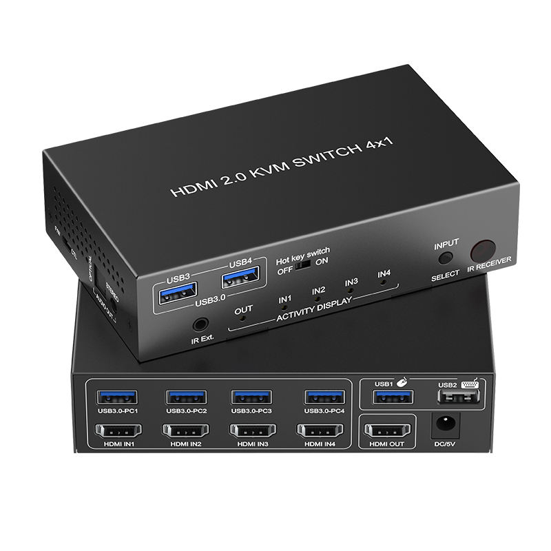 8k60HZ Kvm Switch 4 puertos Soporte USB 3,0 HDMI Switch 4x1 Resolución 4k120hz Control remoto IR