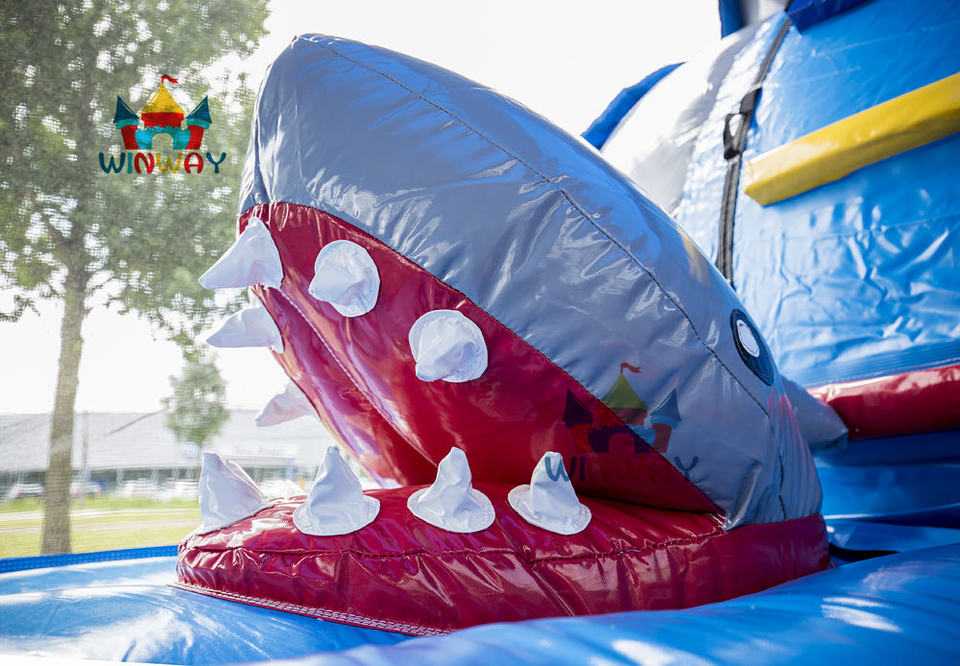 Castillo Inflable de 8m con Tobogán Seco, Diseño de Tiburón, Mundo Marino, Tamaño Mediano, Modelo Unisex Ww10