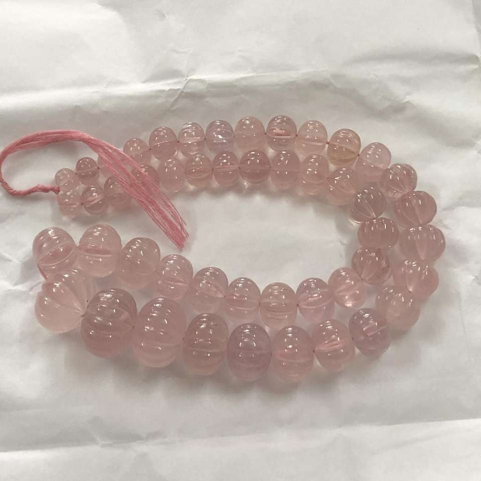 Product Name:Natural Rose Quartz Carved Melon Shape Gemstone Beads