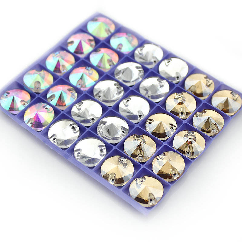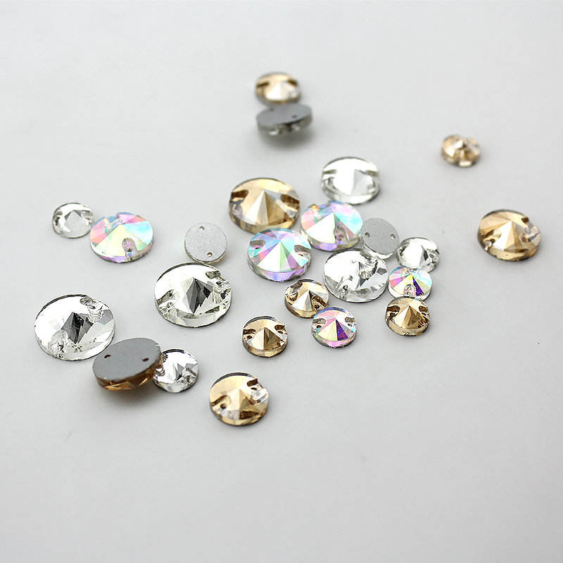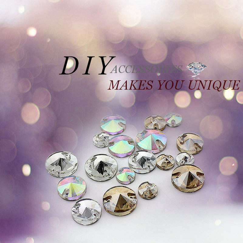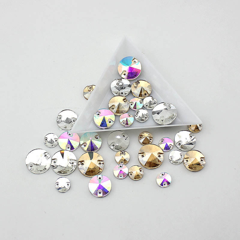 8mm-16mm redonda de Cristal AB Color de diamantes de imitación de plata costura piedras espaciador botones para prendas de vestir de 30-100pcs