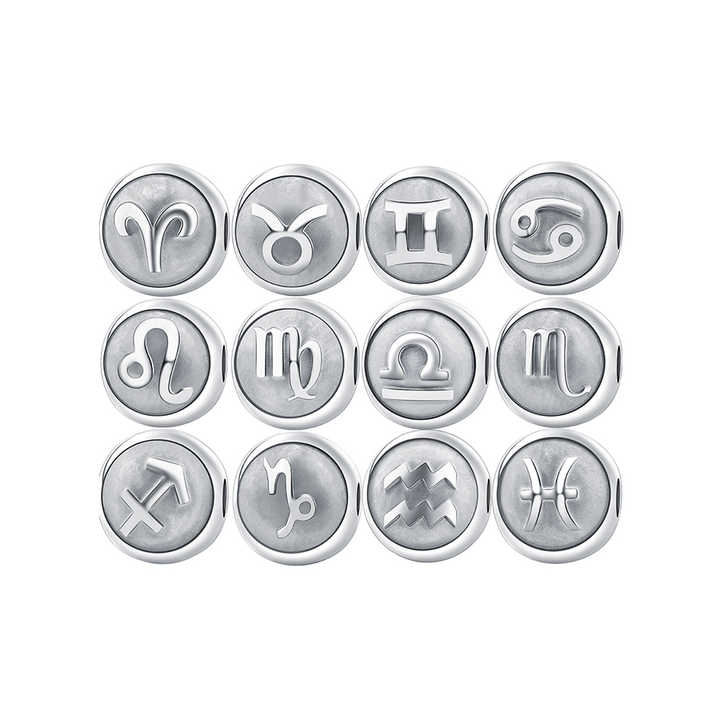 Abalorio de Horóscopo de Acero Inoxidable 316L de 8 mm, Joyería de Plata, Cuentas en Relieve con Signos del Zodiaco para Pulsera