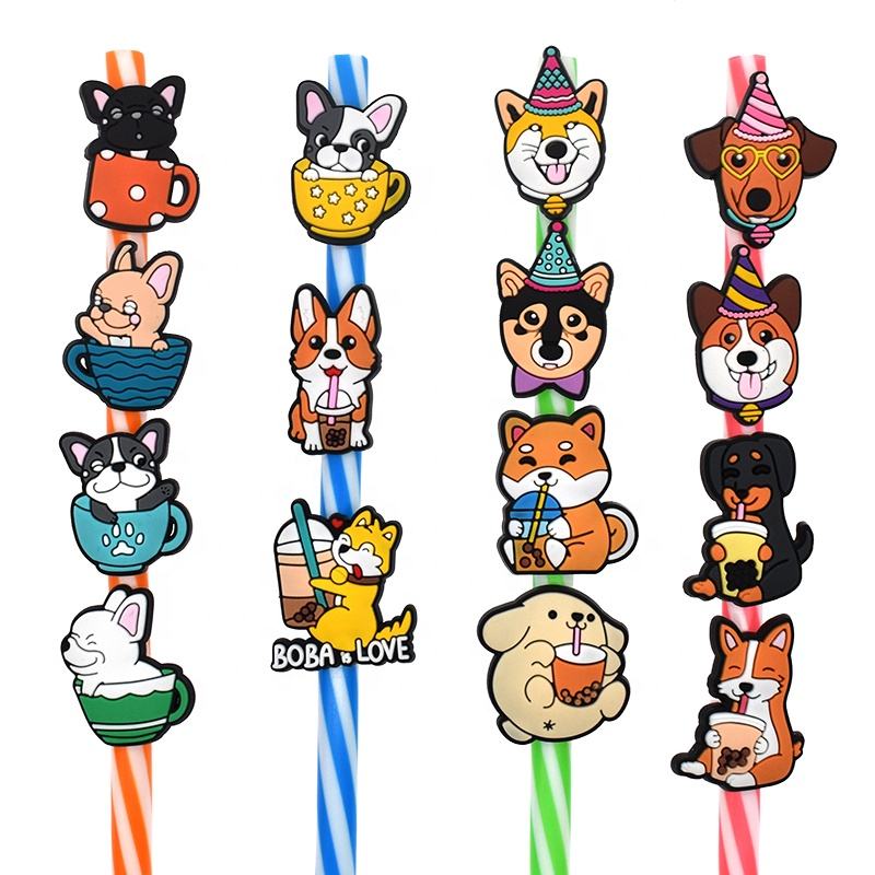 8mm de silicona personalizada reutilizable animales lindos cubiertas de paja perros animales Kawaii Navidad paja encantos clásico dibujos animados paja Topper