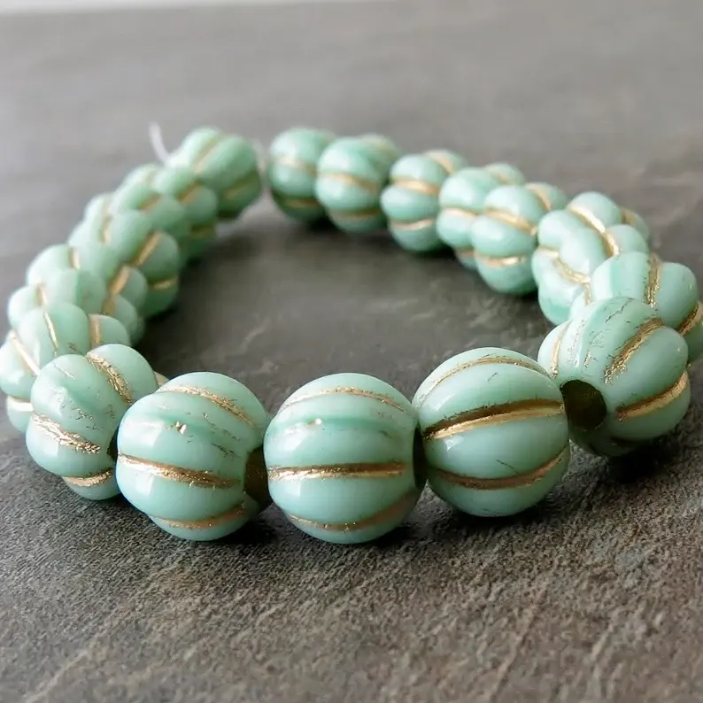 Cuentas redondas de cristal checo de melón con agujero grande de oro verde menta de 8mm para la fabricación de joyas