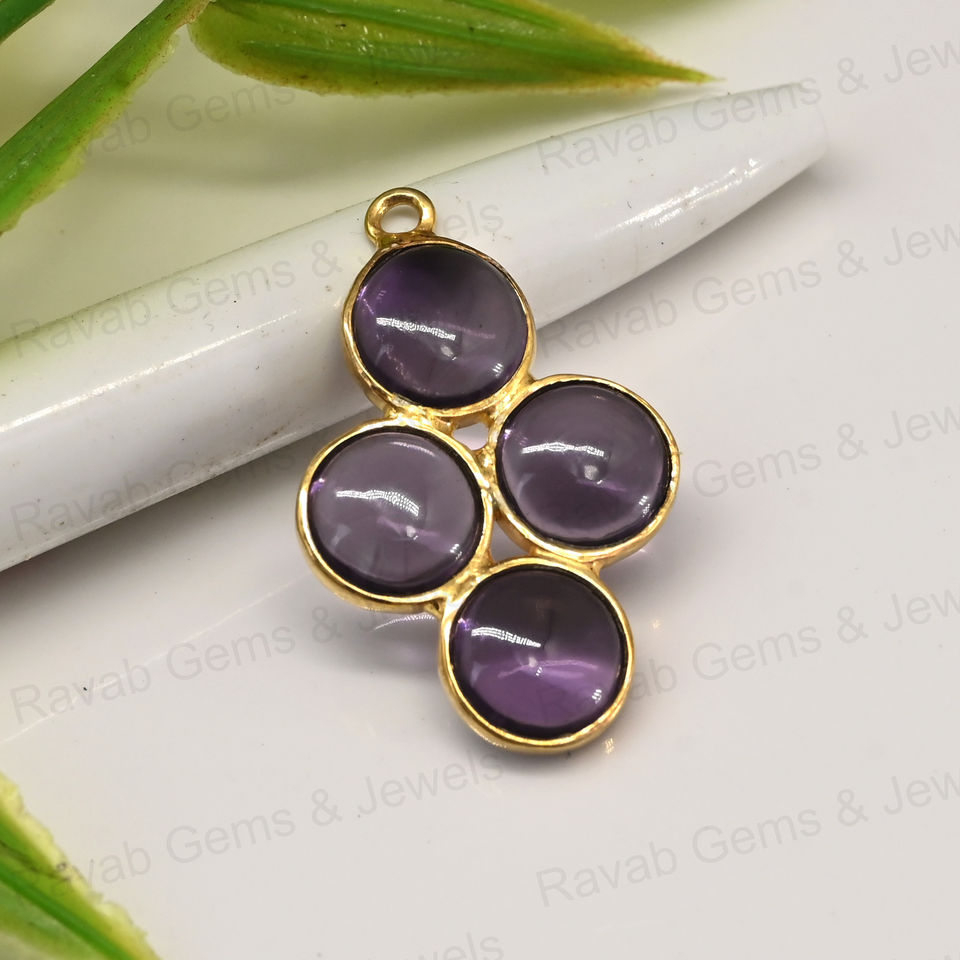 Producto:Colgante con dije en forma de flor de plata chapada en oro amatista