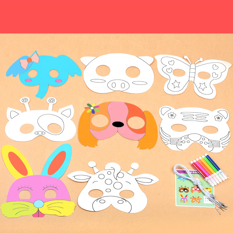 8 Piezas de Máscaras de Animales de Dibujos Animados Pintadas a Mano, Máscaras Creativas para Fiestas de Halloween, Manualidades de Graffiti para Niños