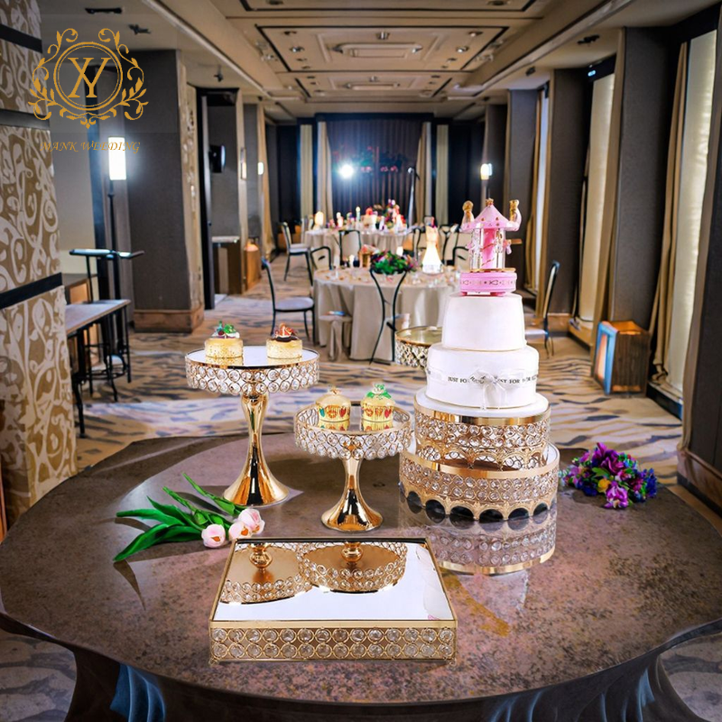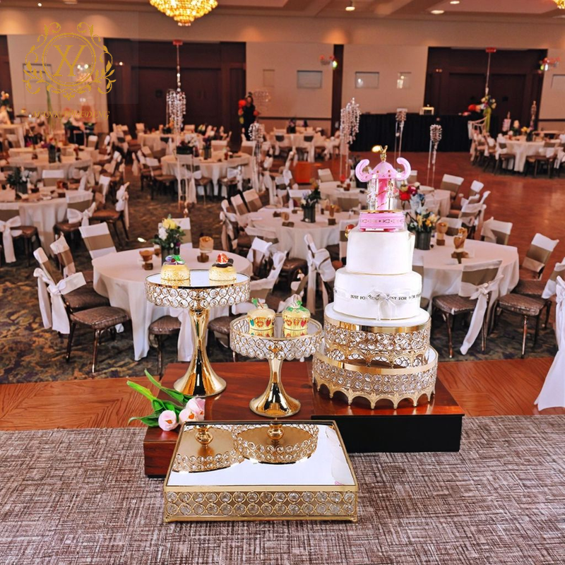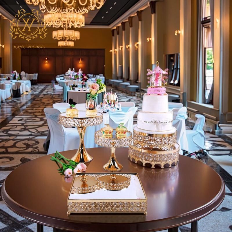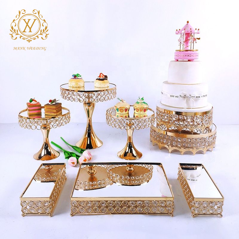 8 unids/set de mesa de postre personalizada, juego de soporte de pastel de oro y plata para decoración de fiesta de boda, soporte de pastel de boda de cristal de Metal