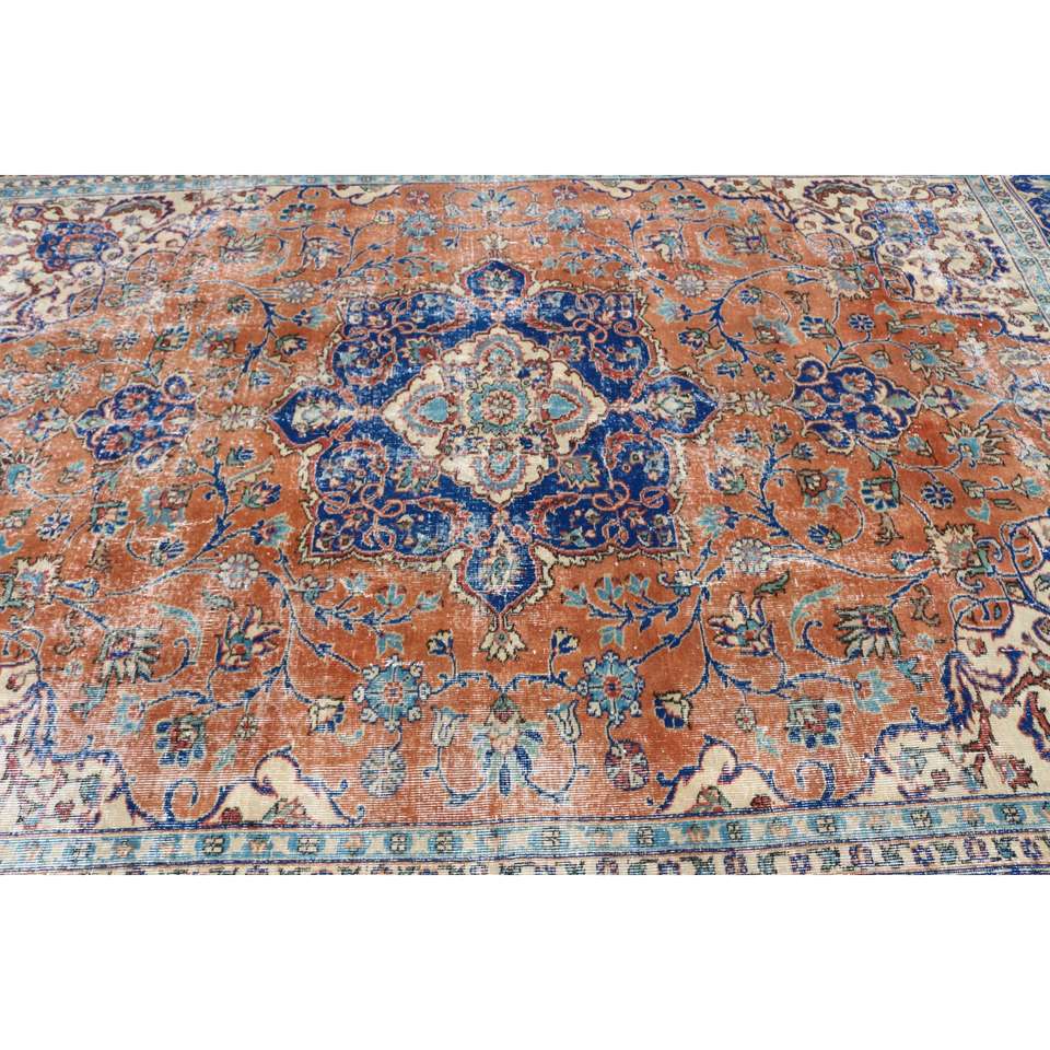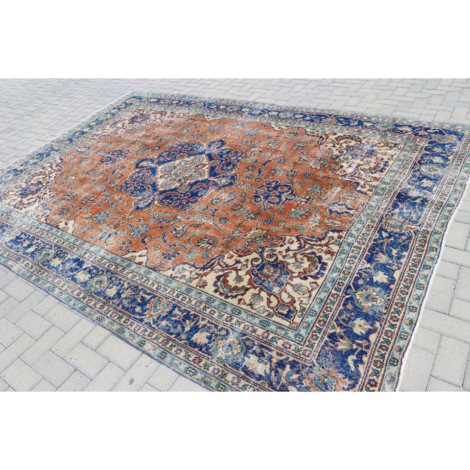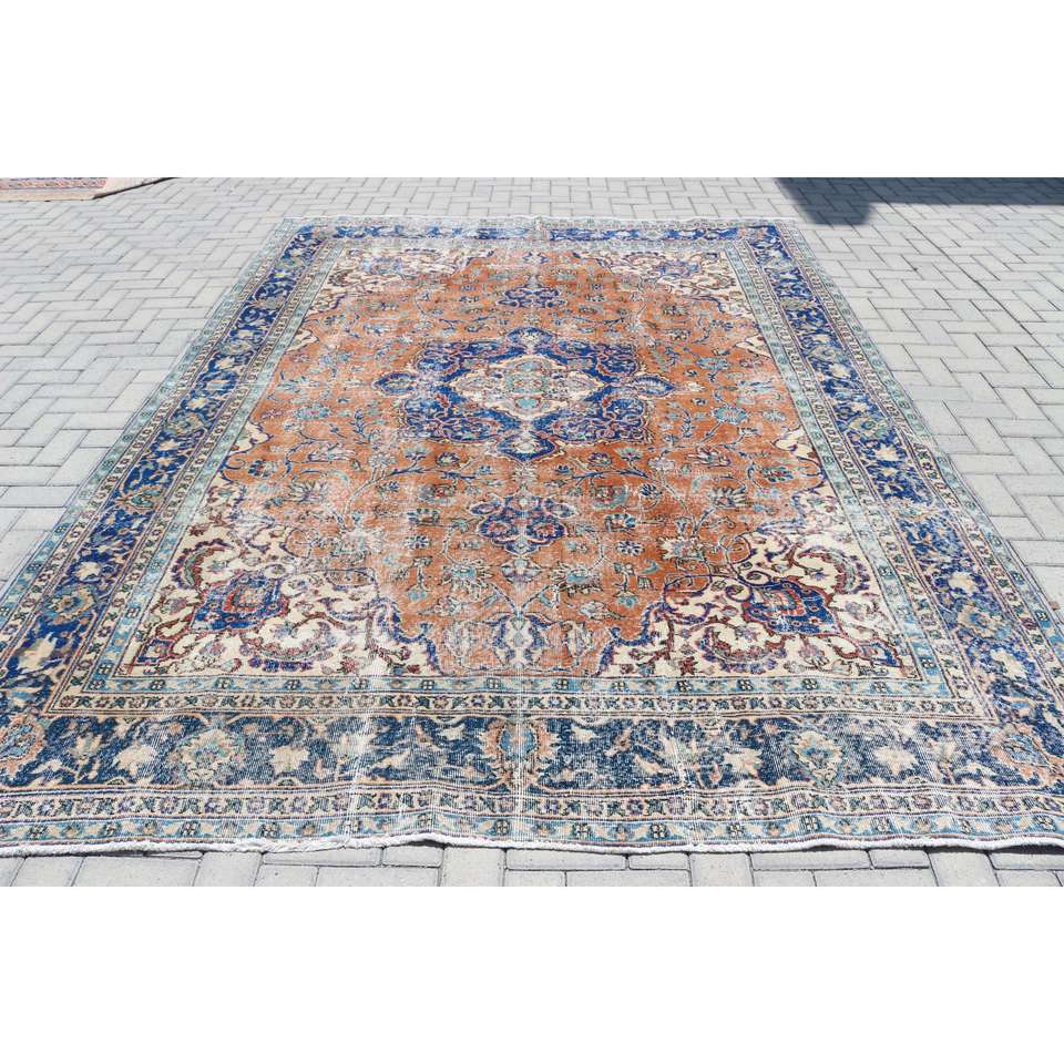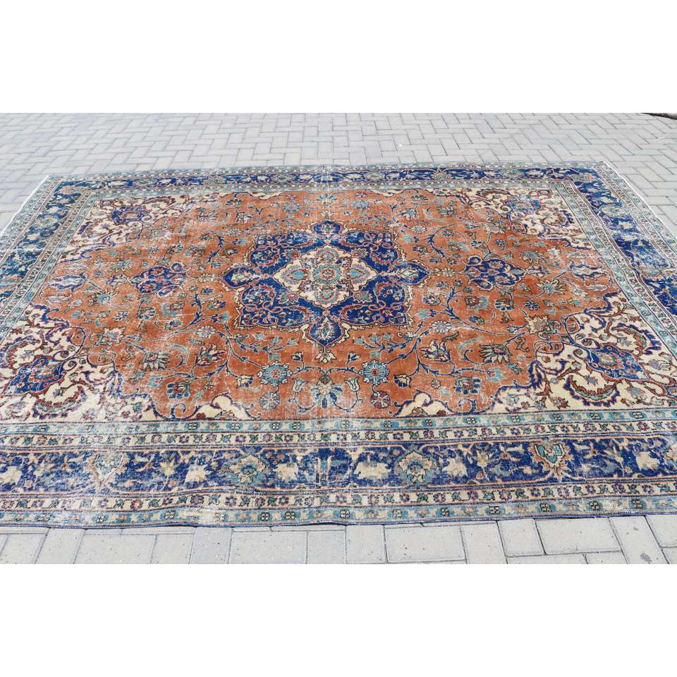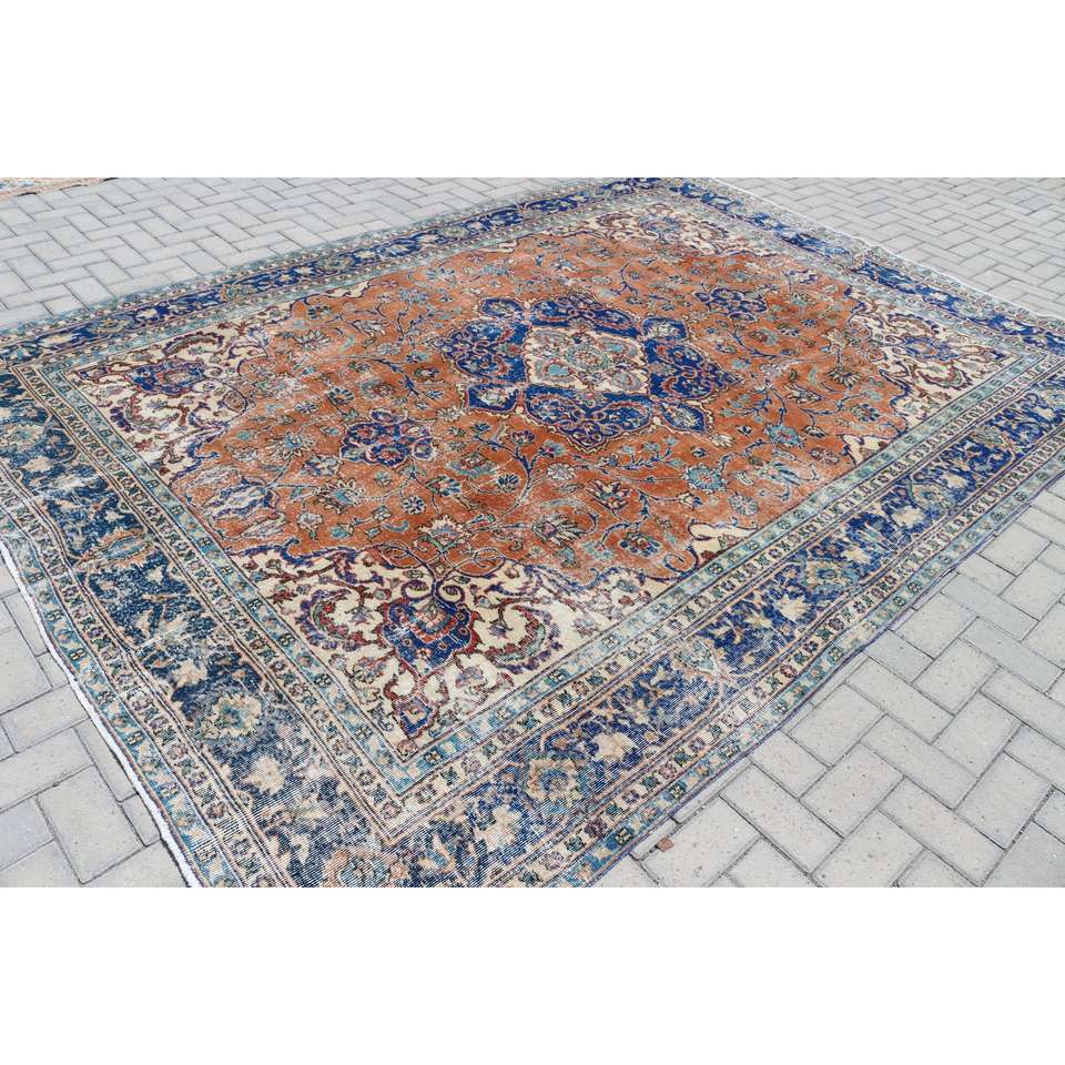 Alfombra Turca Extra Grande de 8x10.9 pies, Alfombra Azul Vintage del Suroeste