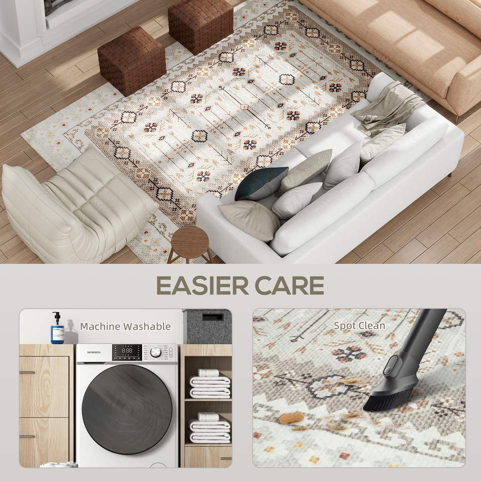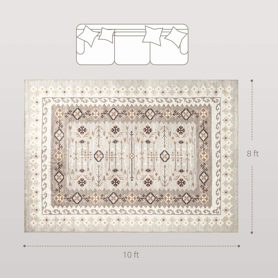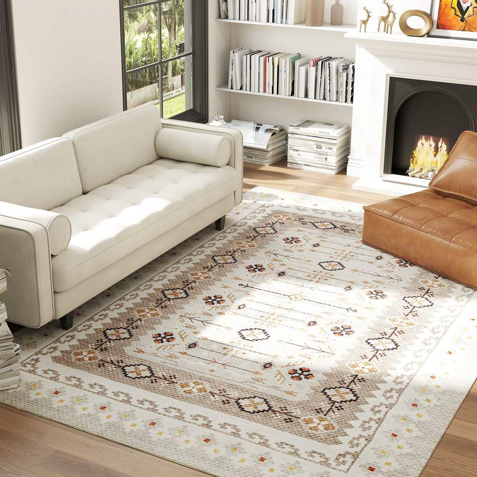 Juego de Alfombras de Piso de Franela con Estampado Boho Antideslizantes y Lavables a Máquina de 8x10 para Sala de Estar, Dormitorio y Comedor - Marrón
