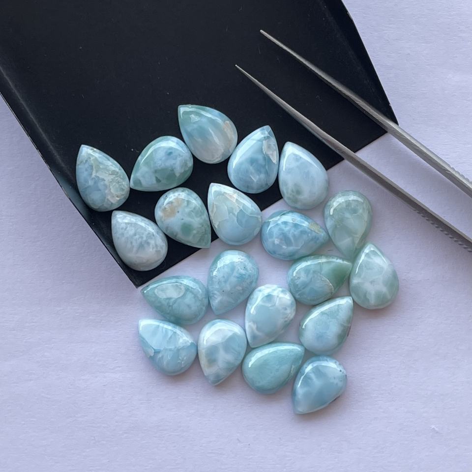 Product Name:8x6mm Natural Larimar Stone Smooth Pear Loose Calibrated Cabochons
