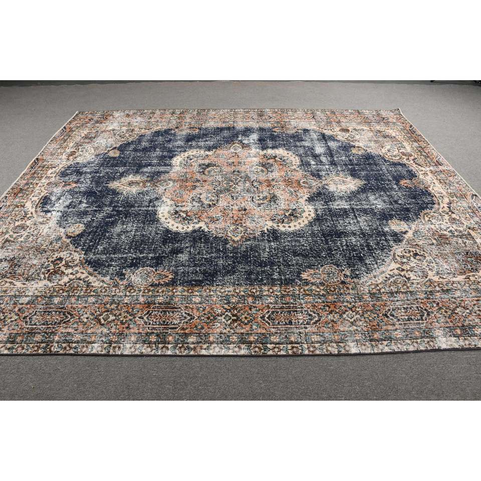 Alfombra de 8x9.5 pies, Alfombra Turca Vintage, Alfombra Azul de Lana del Suroeste