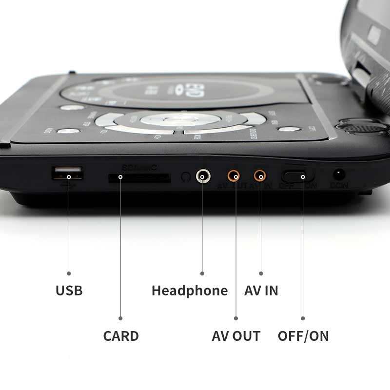 Reproductor de DVD Portátil USB con Pantalla de 9 Pulgadas, Batería Recargable y TV Analógica, Venta al Por Mayor